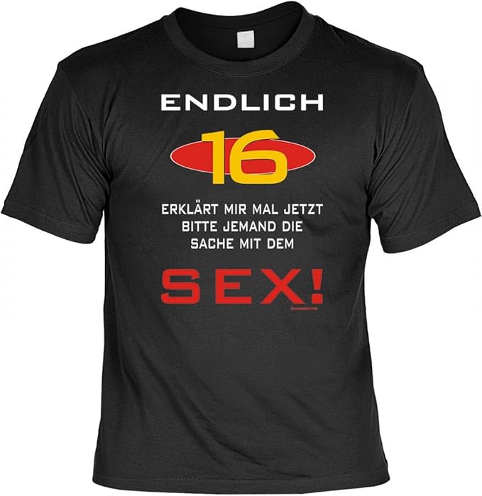Lustiges T Shirt Zum 16 Geburtstag Endlich 16 Erklart Mir Jetzt Jemand Die Sache Mit Dem Sex Funshirt Als Coole Geschenk Idee Jetzt Mit Urkunde Grosse S Amazon De Bekleidung