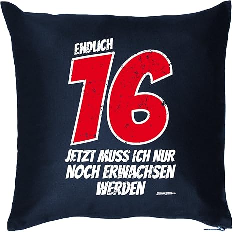 Goodman Design Mega Coole Kopfkissen Dekokissen Fur Geburtstage Endlich 16 Jetzt Muss Ich Nur Noch Erwachsen Werden Geburtstagsidee Amazon De Kuche Haushalt