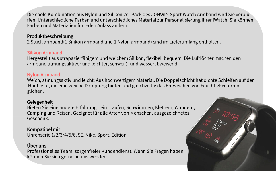 Jonwin Pack Of 2 Sports Strap Compatible With Apple Watch Strap 44 Mm 42 Mm 40 Mm 38 Mm Soft Lightweight Breathable Waterproof Nylon Silicone Strap For Iwatch Series 6 5 4 3 2 1 Se S M