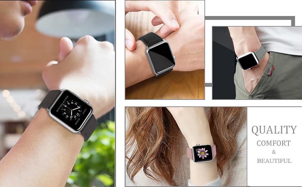 Mrotech For Apple Watch Leather Bracelet Genuine Amazon De Elektronik